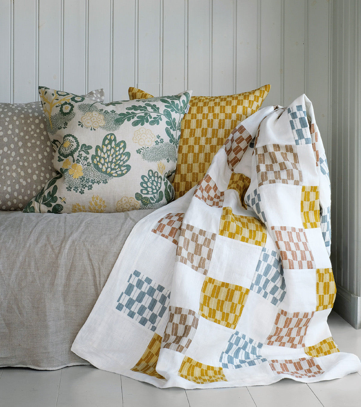 This is a contemporary version of a Swedish Gustavian style check and it is truly useful in an interior. Drawn by hand this design has a structure to it but with a lovely element of imperfect lines. With details of small graphics stitches and quirky lines it becomes soft, crafty and comfortable.
