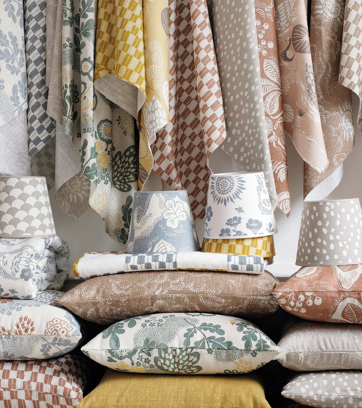 Gustav is drawn by hand and is printed by our Master printers on our beautiful and sustainable high quality linen weave, which is lively and make our patterns age with grace.