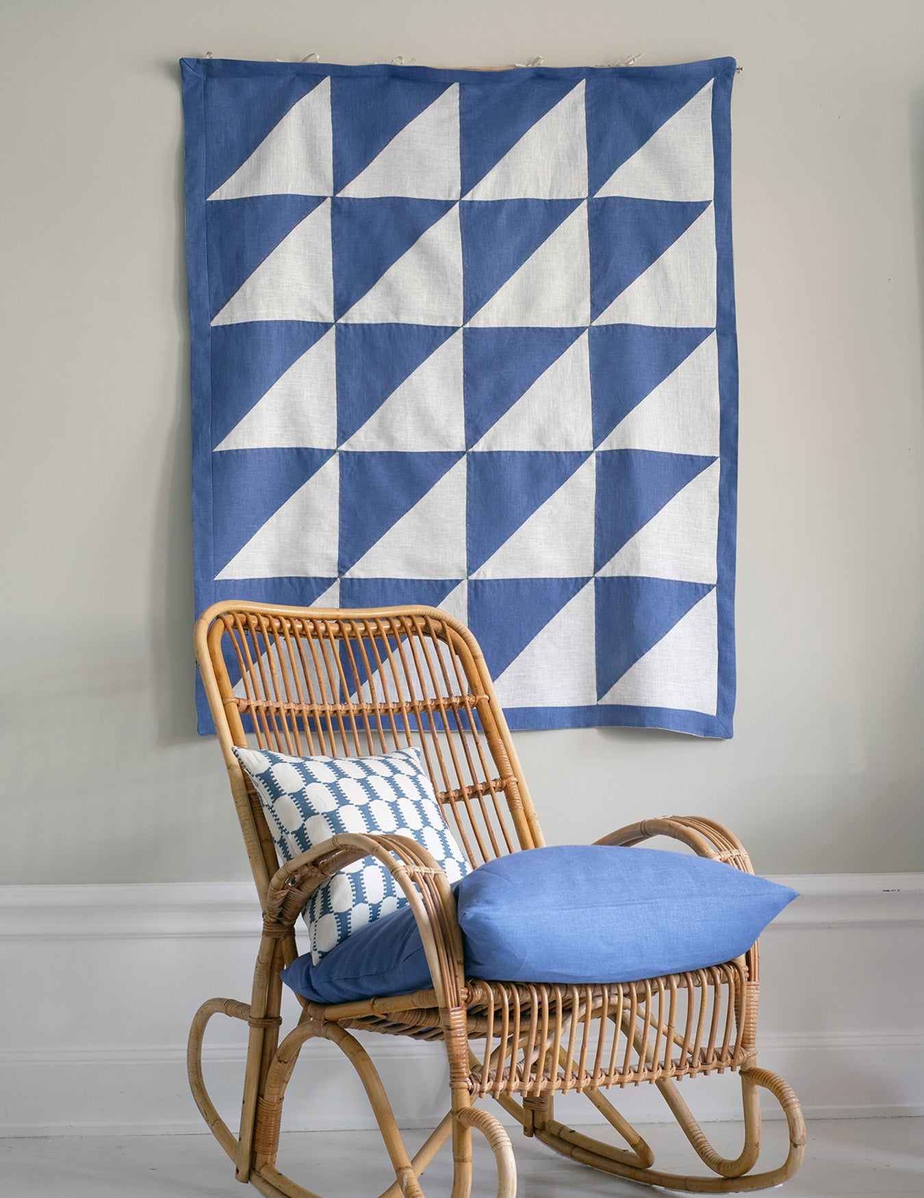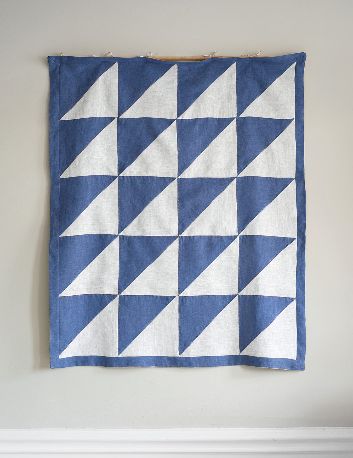 Unique Linen Quilt for wall hanging, made by hand in our Studio in Stockholm by Camilla Lundsten. All our Quilts are one of a kind and there is only one of each motif and combination made. Our quilts are made new fabrics or vintage fabrics, sometimes a mix of the two. This quilt is made of new Linen fabric. Backing: 265g gram weight Natural Linen fabric.