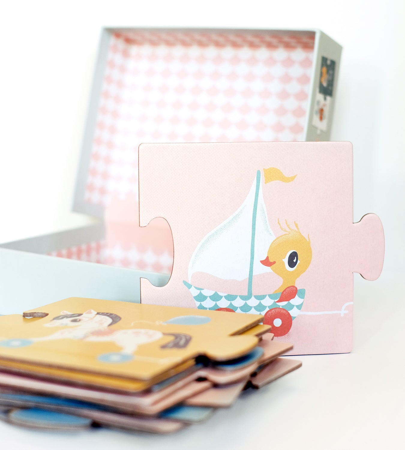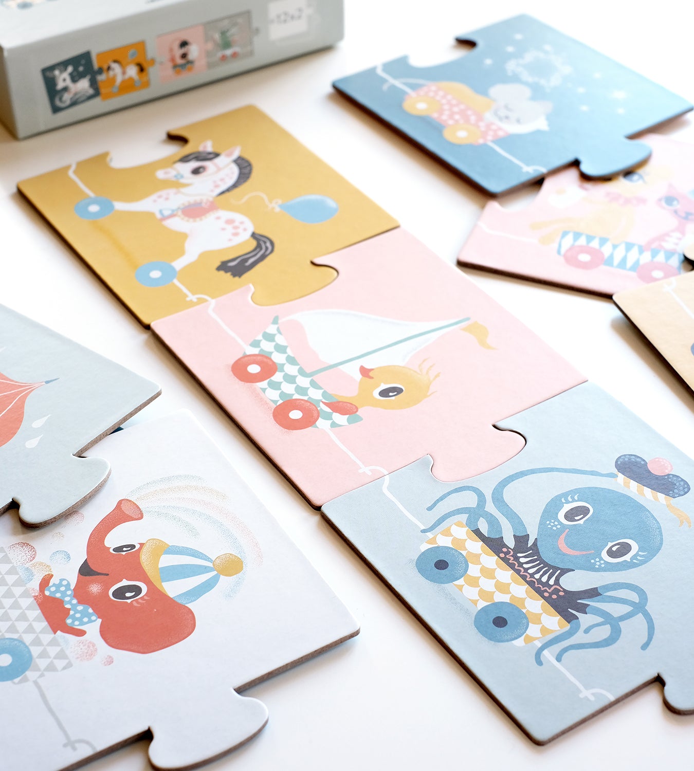 This entertaining and pedagogical jigsaw puzzle is created to help your child practice both imagination and motoric skills. Let the animals from the Littlephant character world join you on a ride by connecting them in a combination you like.