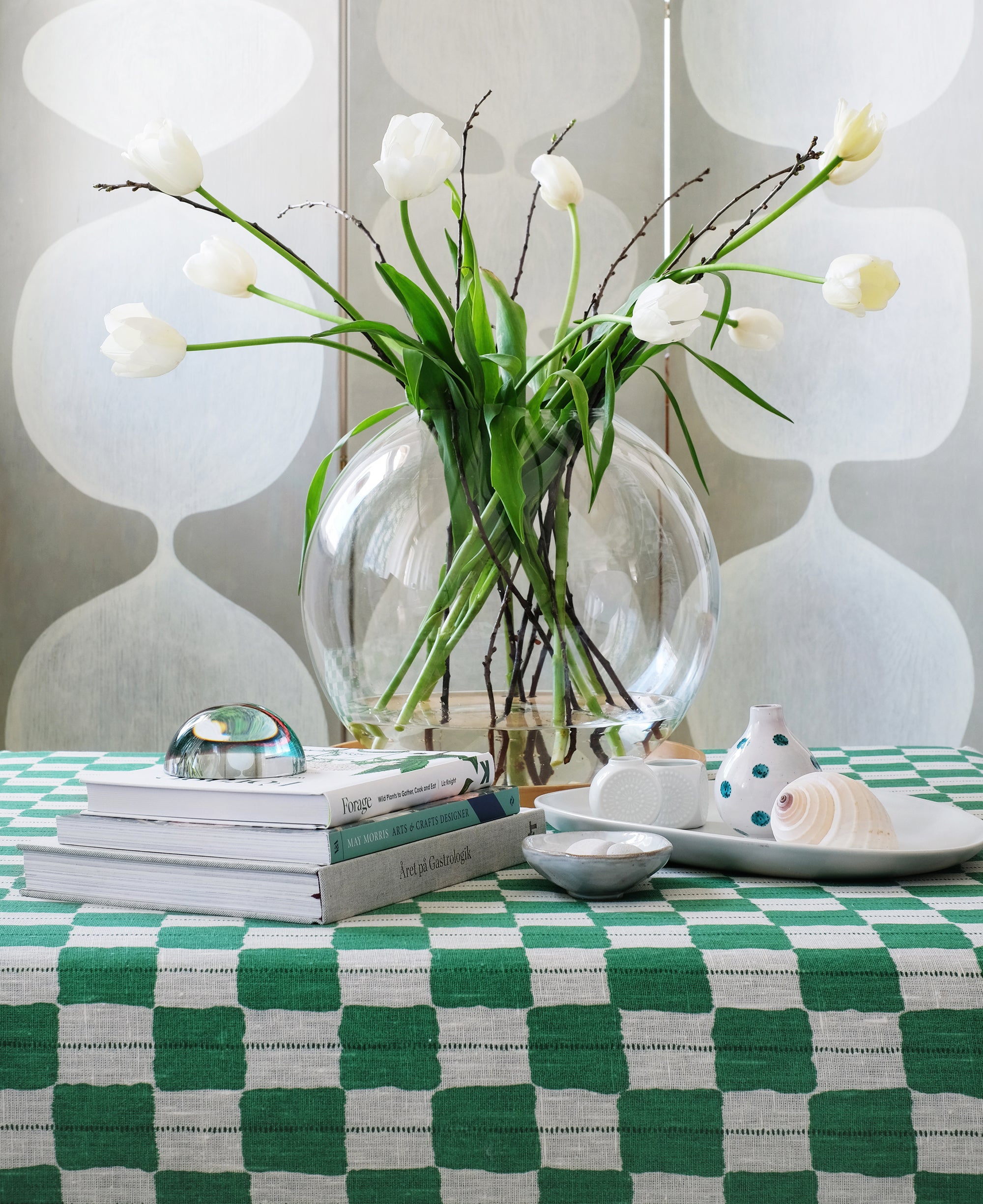 Karin is printed by our Master printers, on our beautiful and sustainable high quality linen weave, which is lively and make our patterns age with grace.