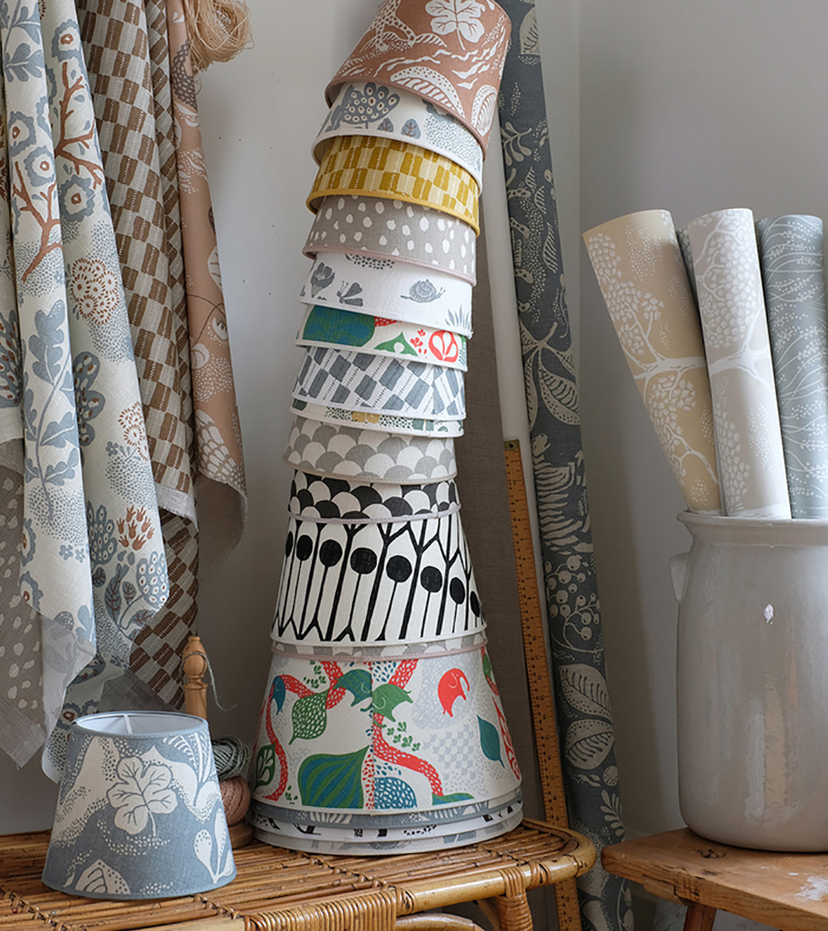 Our lampshades are designed by Camilla Lundsten in our Studio in Stockholm. They are made in Sweden by the hand of skilled craftsmen, therefore they are all unique and the placement of the design varies. The lampshades are produced in small editions, in a variety of our fabrics made of linen or cotton, printed by Master printers in Northern Europe.