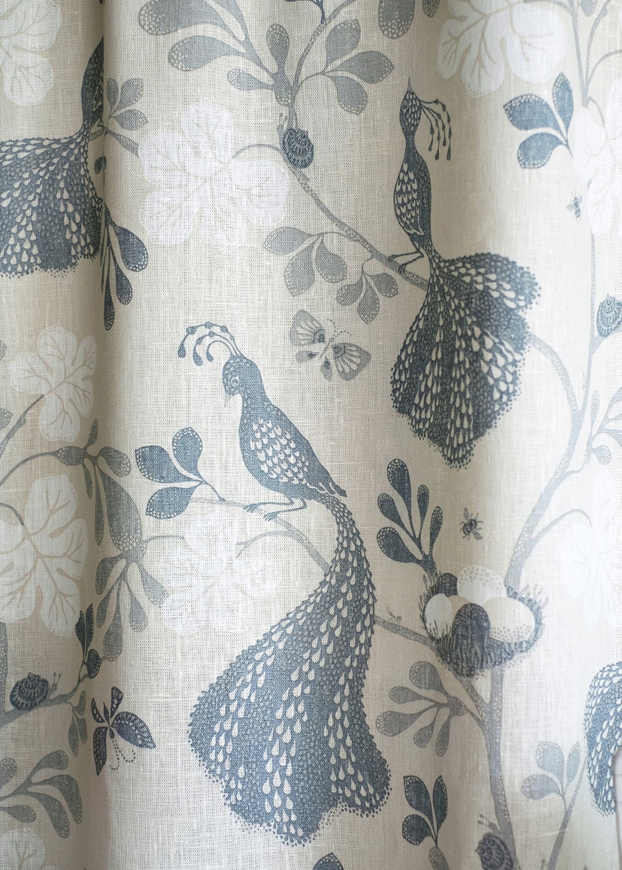 Night birds Enoby/Blue - Linen Fabric Swatch A6