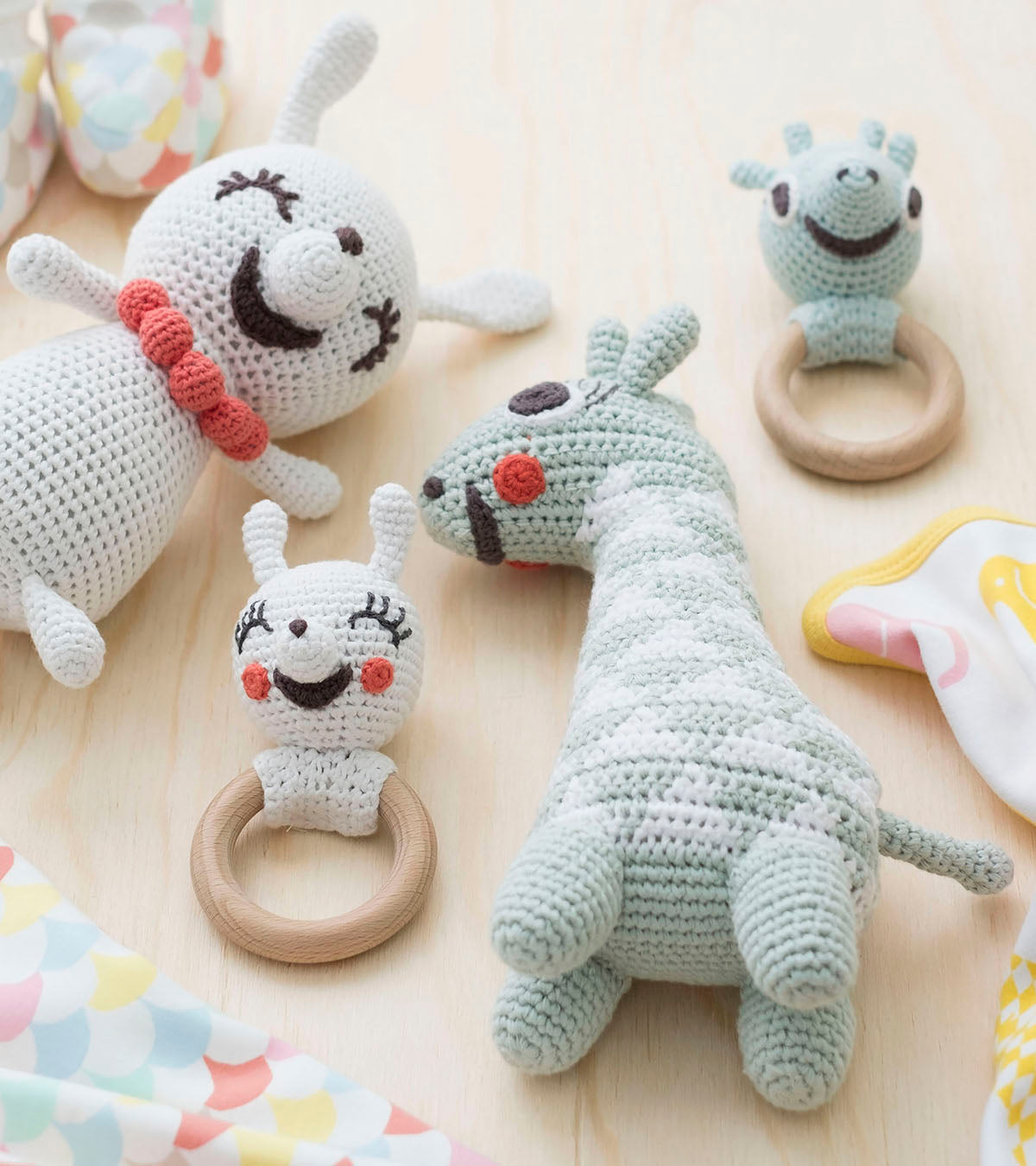 Our organic cotton crochet rattles are created with inspiration from our kids character universe, to bring amusement and joy to your baby.