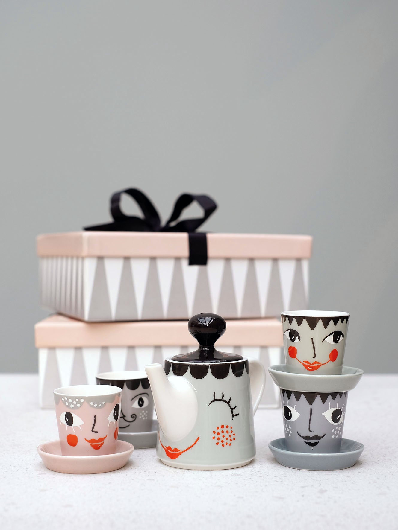 With this miniature porcelain play tea set children and their dolls can create a grande tea party. The sets come in characteristic Littlephant design, with prints and with characters from the world of Littlephant.