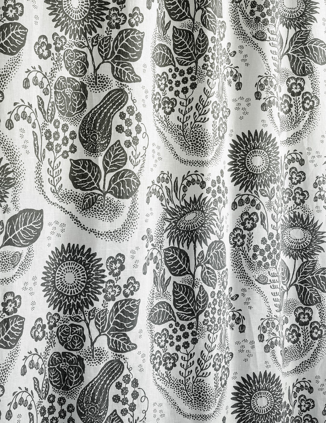 September is drawn by hand and is printed by our Master printers on our beautiful and sustainable high quality linen weave, which is lively and make our patterns age with grace.
