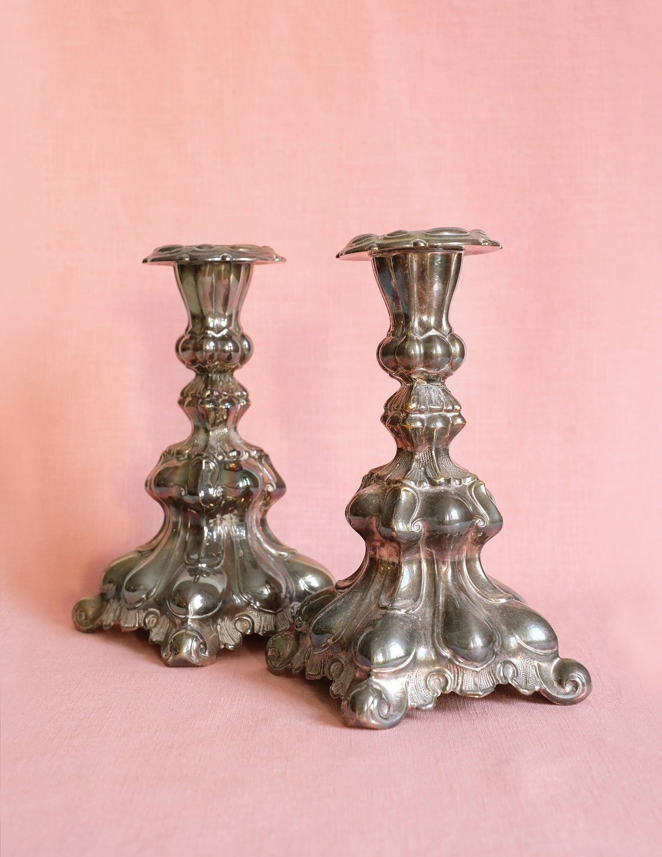 Swedish Vintage Baroque inspired Candle holders. These beauties, sold as a pair, are made of Nickel Silver and is of Swedish heritage from the 20th century. Curated and qualified by Littlephant. Handpicked by our studio to serve you with some of the best and most personal pieces for your home.