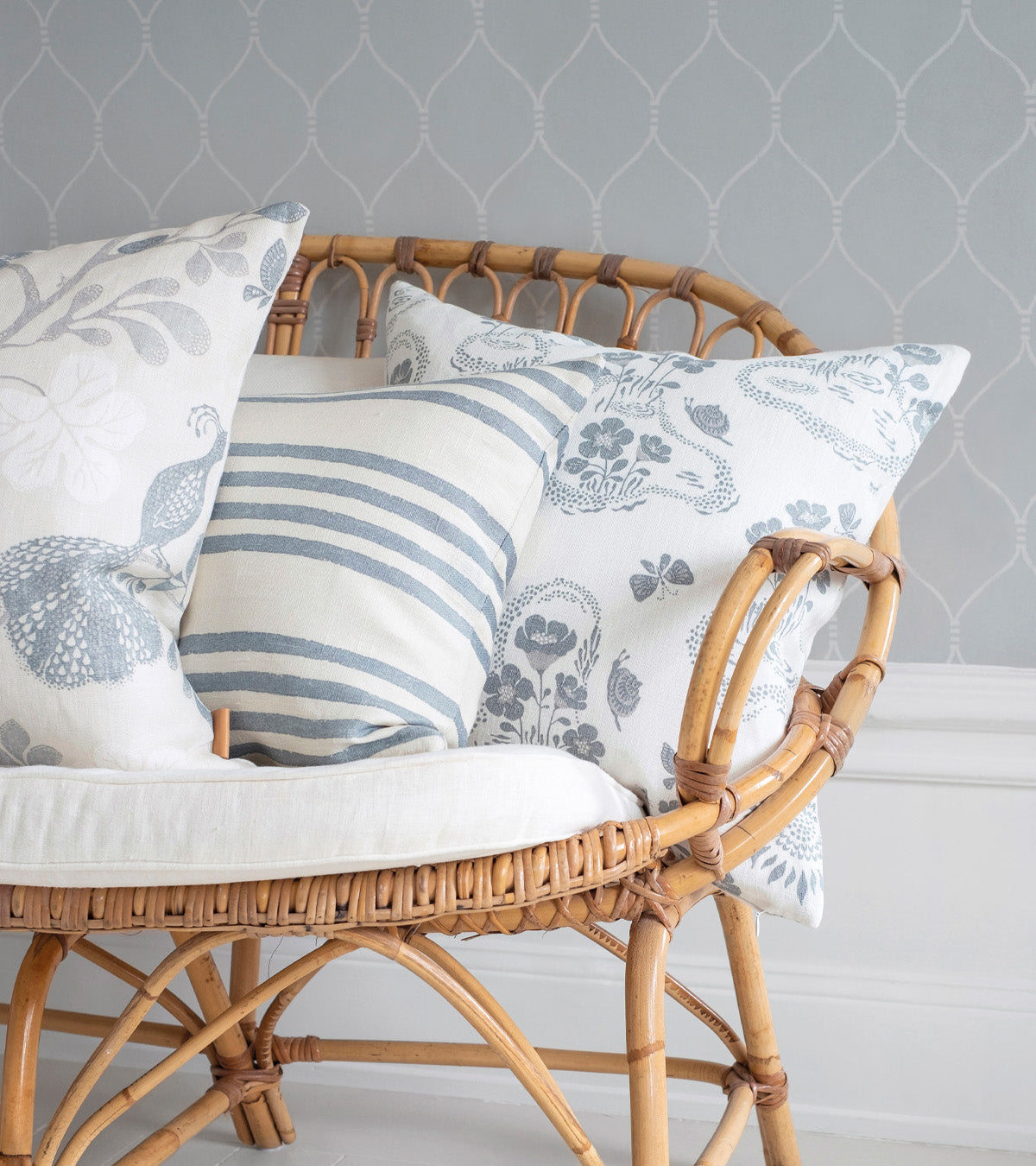 This wallpaper is surface printed, wet in wet, making a truly magnificent. The process is monitored entirely by the human eye and hand, to let the natural tactility of colour and paper show in all its beauty. All colours are mixed by hand and small variation in colour, size and pattern repeat can occur from batch to batch.
