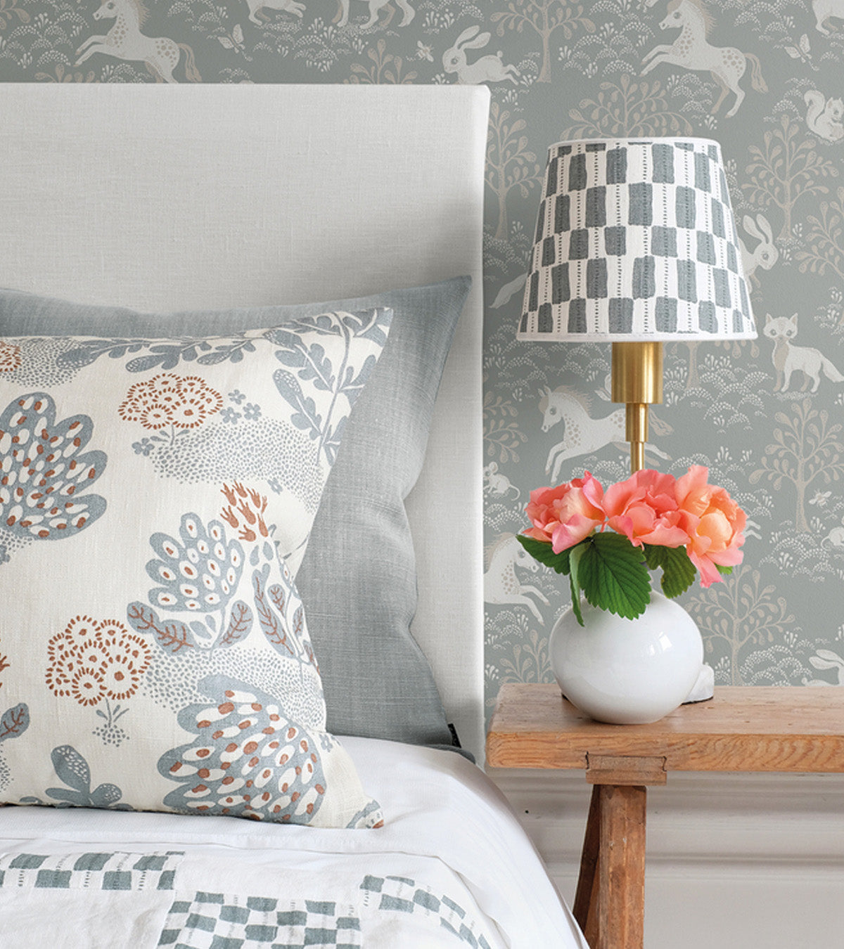 The print is drawn by hand by Camilla Lundsten. The wallpaper is surface printed, a process monitored entirely by the human eye and hand, to let the natural tactility of colour and paper show in all its beauty. All colours are mixed by hand and small variation in colour, size and pattern repeat can occur from batch to batch.
