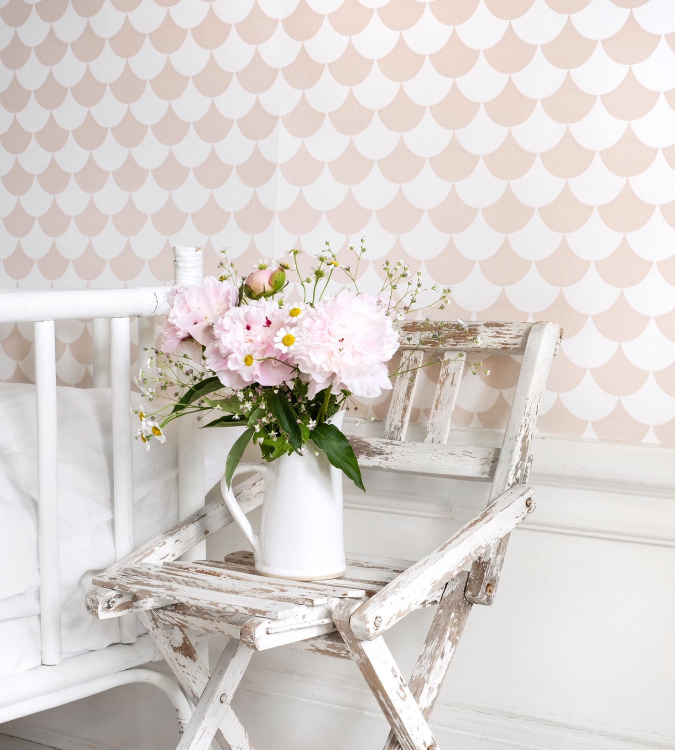 Waves White/Dusty Pink - Wallpaper