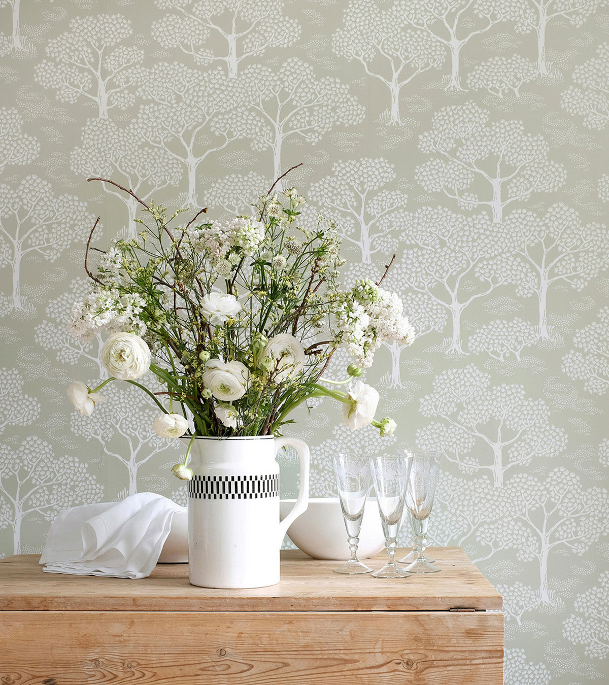 The inspiration for our wallpaper Woodland notes is drawn from the Japanese expression “Shinrin-Yoku” meaning ”Forest bathing”. It is the process of walking into the woods and letting the impressions of nature clean ones spirit and mind.